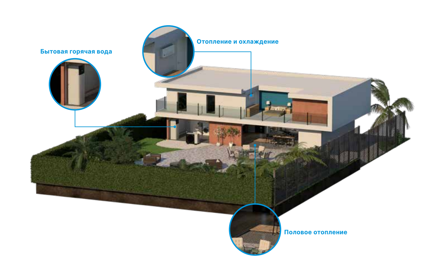 Kā zemas temperatūras siltumsūknis tas ir īpaši efektīvs grīdas apsildes sistēmās un strādājot ar konvektoriem. Abas sistēmas ir pieejamas kā pilnīgs Daikin risinājums.