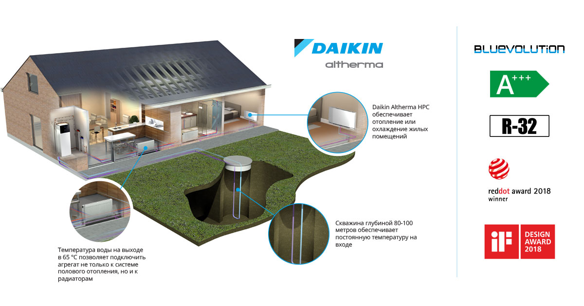 Liela ražība pat visskarbākajos laika apstākļos. Lai nodrošinātu apkuri un karstā ūdens sagatavošanu, Daikin Altherma zemes siltumsūknis izmanto ģeotermālo enerģiju un Daikin invertora tehnoloģiju.